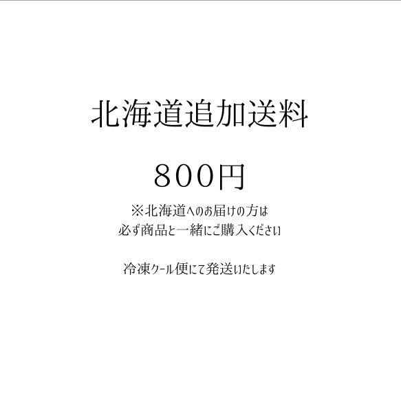 商品は送料込み価格となっておりますが、 北海道へのお届けは別途追加送料を頂戴しております。 【北海道追加送料:800円】 北海道にお届けの場合は、 必ず商品と一緒にこちらをご購入ください。 ※クール便(冷凍)でお届けいたします。 ※ご購入がない場合、発送が保留となる場合がございます。